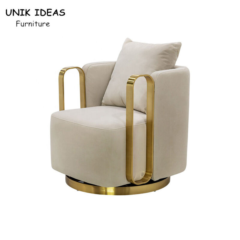 L'acier inoxydable décrit d'or plus le noir à extrémité élevé de gorgeour, processus, même utilisation à long terme ne change pas la rouille de couleur. C'est chaise de sofa de salon peut tourner.