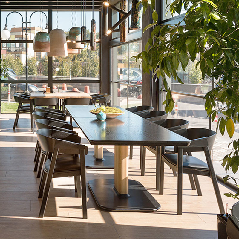 Chaise en bois de couverture de nature dinant la chaise moderne d'accoudoir de salon de café
