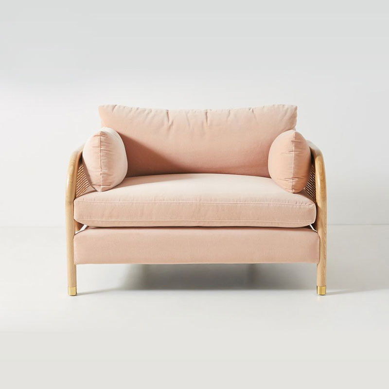 Sofa en osier de tissu de velours de Sofa Living Room Furniture Rattan de salon rose