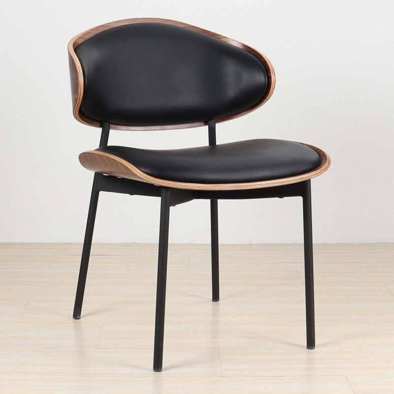 Noix en bois noire nordique Bent Wooden Dining Chairs de chaises en cuir de jambe en métal