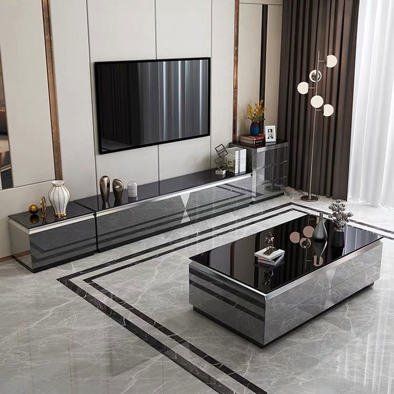 Dessus de luxe italien de marbre de conception de table basse d'or d'acier inoxydable