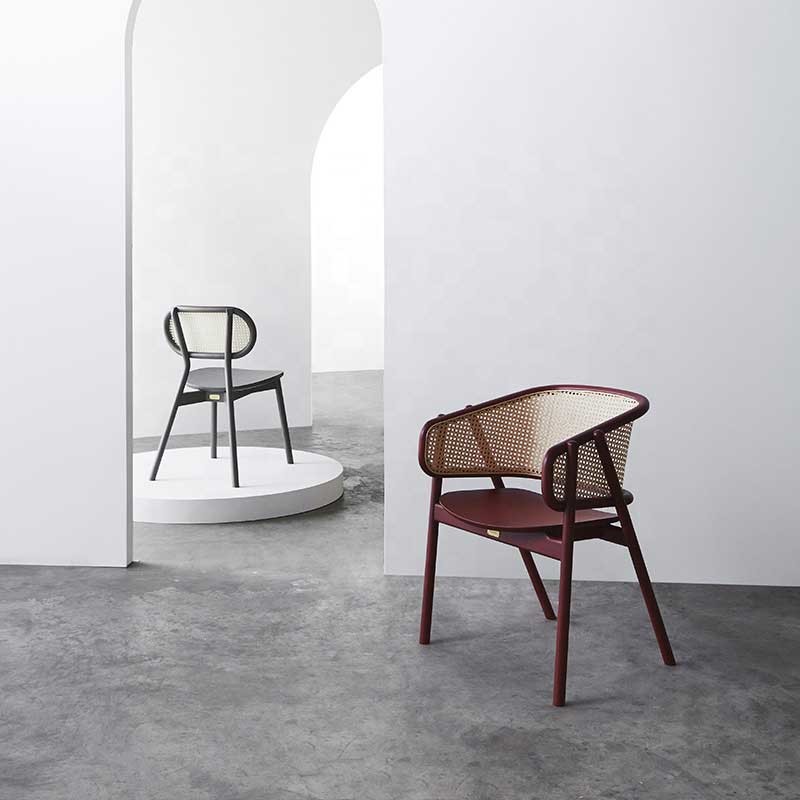 Dessinant sur les caractéristiques des chaises médiévales du 20ème siècle, les éléments de rotin sont maintenus pour l'ornement. Tissage traditionnel fait main très léger et respirable et pur. Il est techniquement testable.